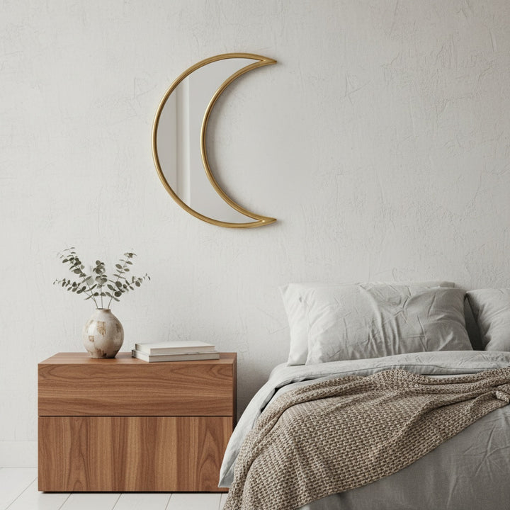 Amanar traces the graceful journey of the moon as it waxes and wanes. Its mirrored crescents—soft yet powerful—invite reflection, not just of the self, but of one’s rhythm. Designed for the soul who honors phases, transitions, and light even in darkness. Amanar doesn’t just hang—it hovers like a quiet guardian of feminine energy.