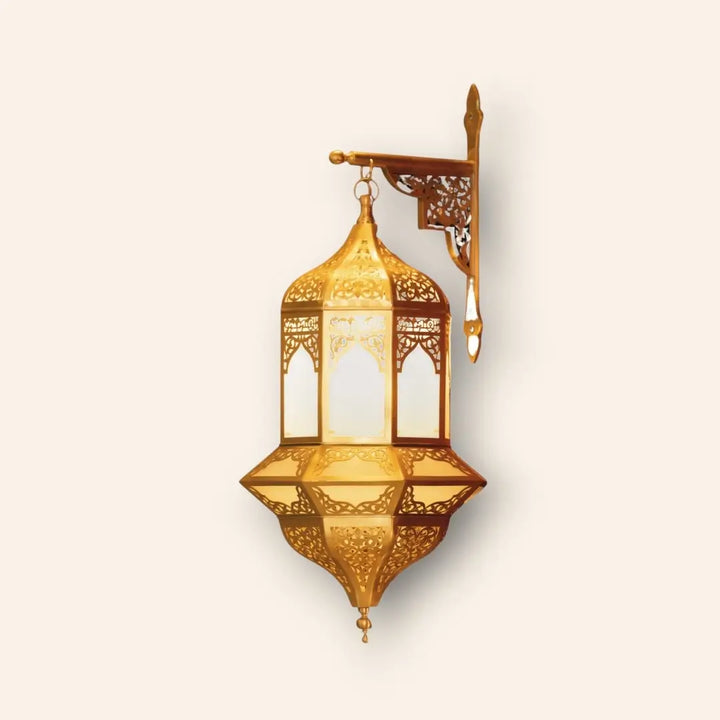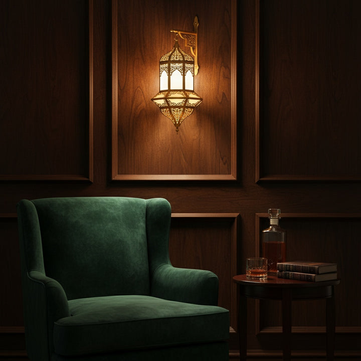 Assil commands attention with understated elegance. Its finely perforated brass surface exudes a refined glow, radiating calm nobility. Designed for those who cherish Moroccan heritage and craftsmanship, this sconce offers both timeless beauty and durability — an ideal choice for luxurious interiors or curated lighting moments.