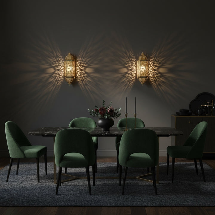 Inspired by Fez's historic core, Batha evokes architectural stillness. Its compact form and warm brass surface channel the calm elegance of medina alcoves. This sconce fits beautifully in transitional spaces and quiet reading corners.