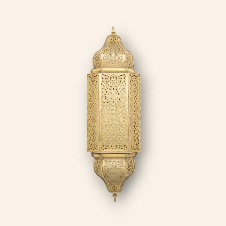This sconce is rooted in place and memory and was named after the historic Batha district in Fez. Its structure is minimal but rich in texture, with brass gently shaped and pierced by hand. It evokes the cool stone corridors of a medina kissed by late afternoon light.