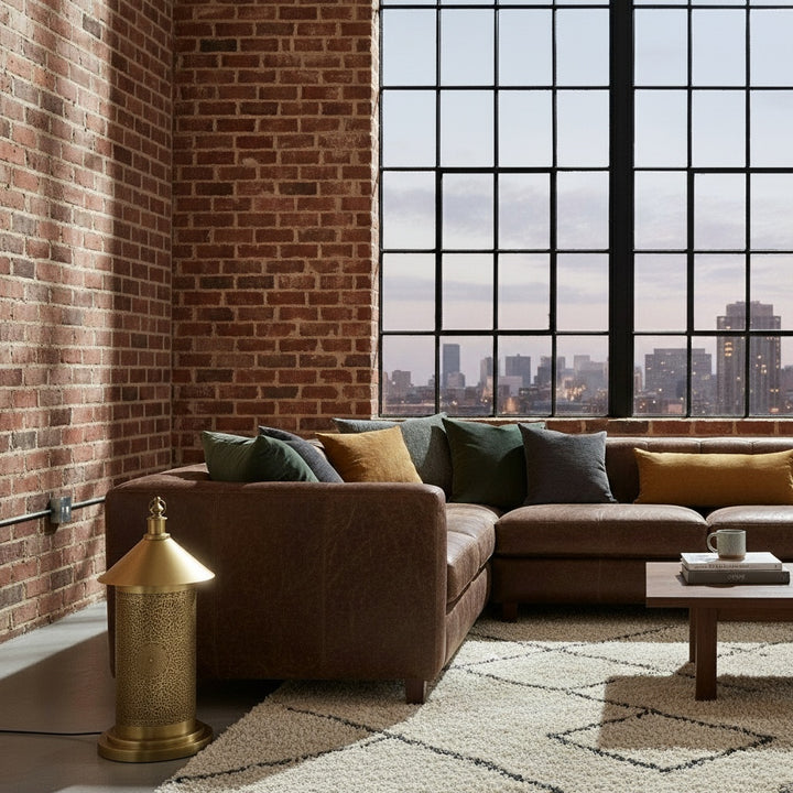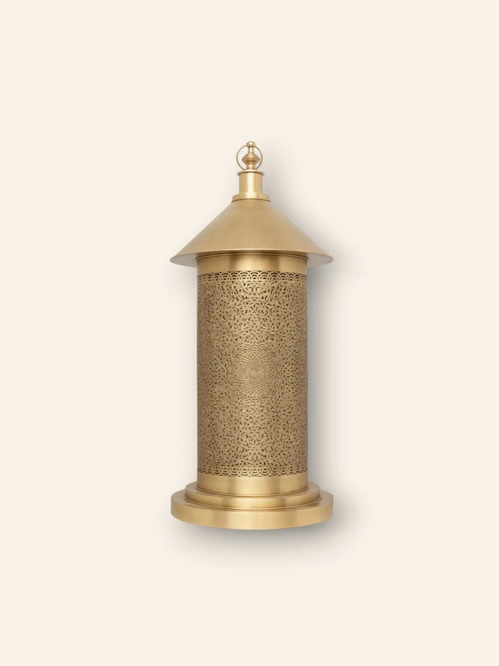 Ifri means “cave” in Tamazight, a space of refuge and deep roots. This floor lamp has weight and shadow in its form, with a darker brass finish that feels ancient and elemental. Light escapes in patterns that mimic carvings on stone walls.