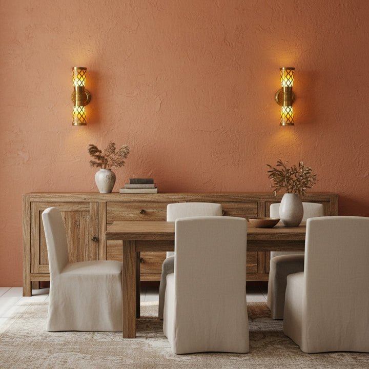 Kandar brings structured light to transitional spaces. With its bold frame and poetic perforations, it evokes Moroccan gateways and sacred geometry. Use it to define thresholds, enhance stairwells, or punctuate long hallways.