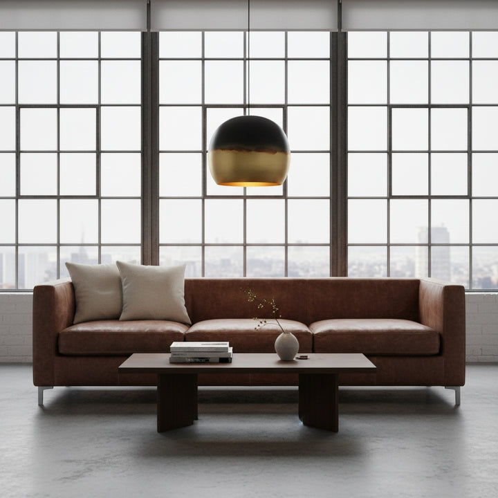 Selma, meaning “peace,” brings serenity into form. Its dome is hand-formed from warm brass, gently curved and perfectly balanced. The punctuated detailing filters the light softly across the space, like the hush of evening prayers in a quiet riad.