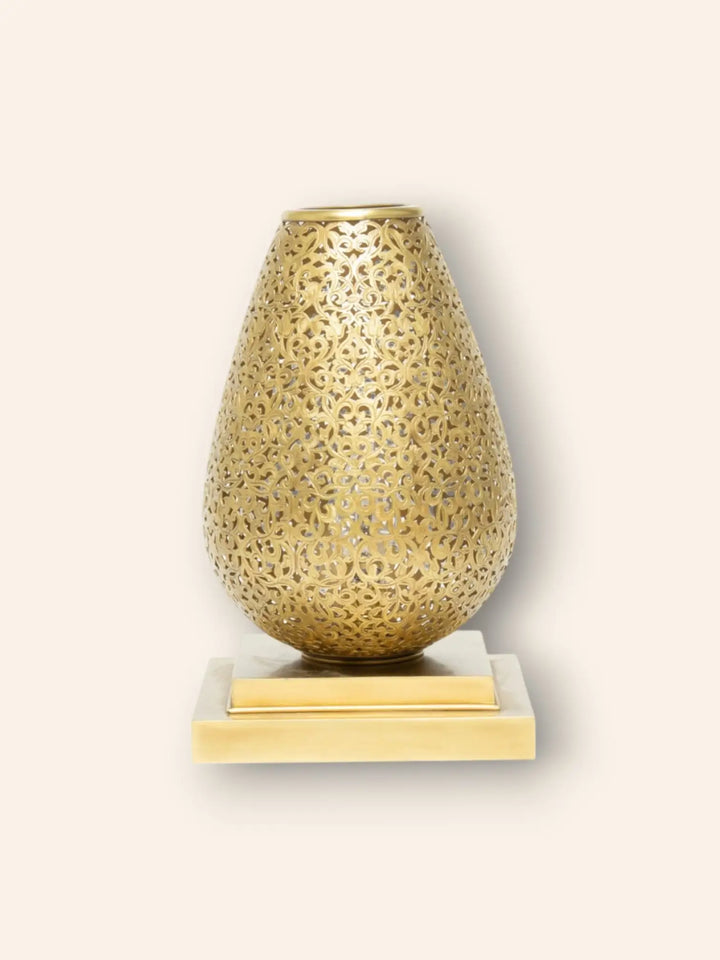 Yamna offers vertical serenity. A graceful tower of brass, it emits a gentle, reflective light that enhances yoga spaces, spiritual corners, or minimal, tranquil homes.